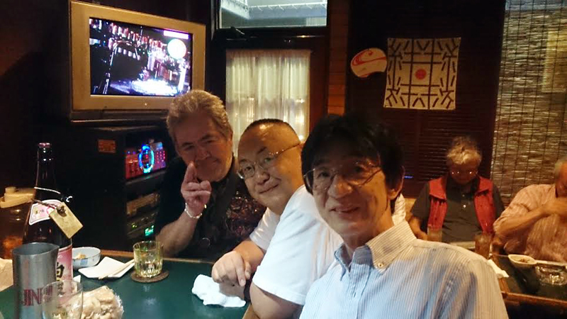 左から佐藤さん、松村邦洋さん、パープル・シャドウズの今井久さん