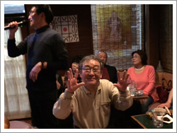 歌詞を思い出しながらの熱演。お酒が入らないととても歌えない。